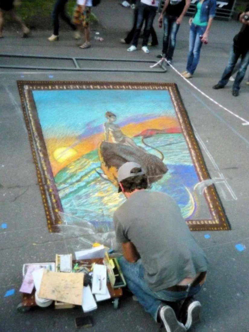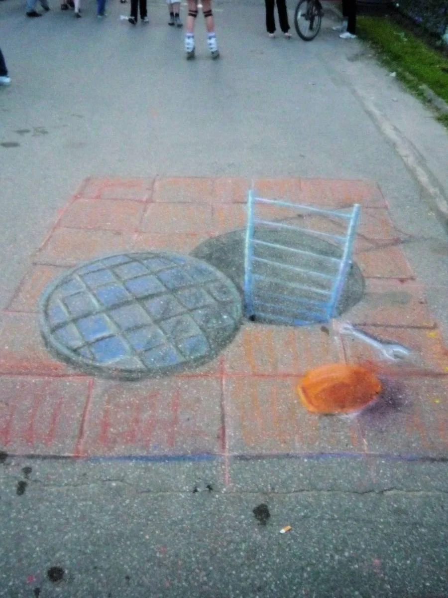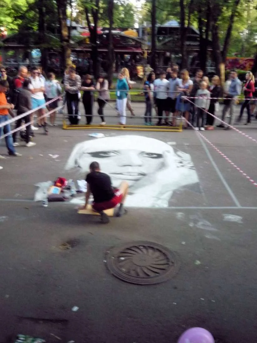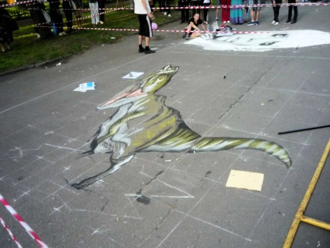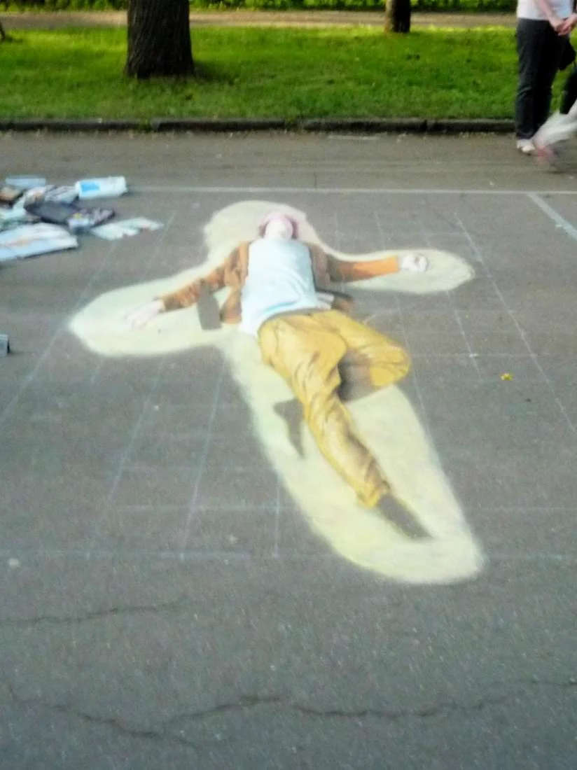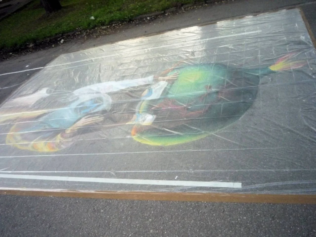 Сегодня в нашем парке проходил какой-то фестиваль.Играла музыка, давали бесплатный кофе. На асфальте были те самые 3д рисунки. Рисунков было много, но по настоящему 3д я увидел от силы 3-4. Остальные - так себе. Правда некоторые красивы и без 3д.