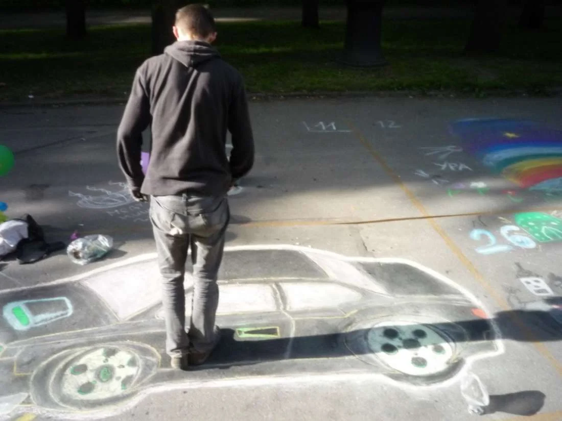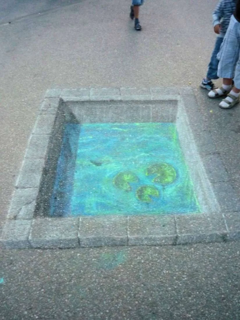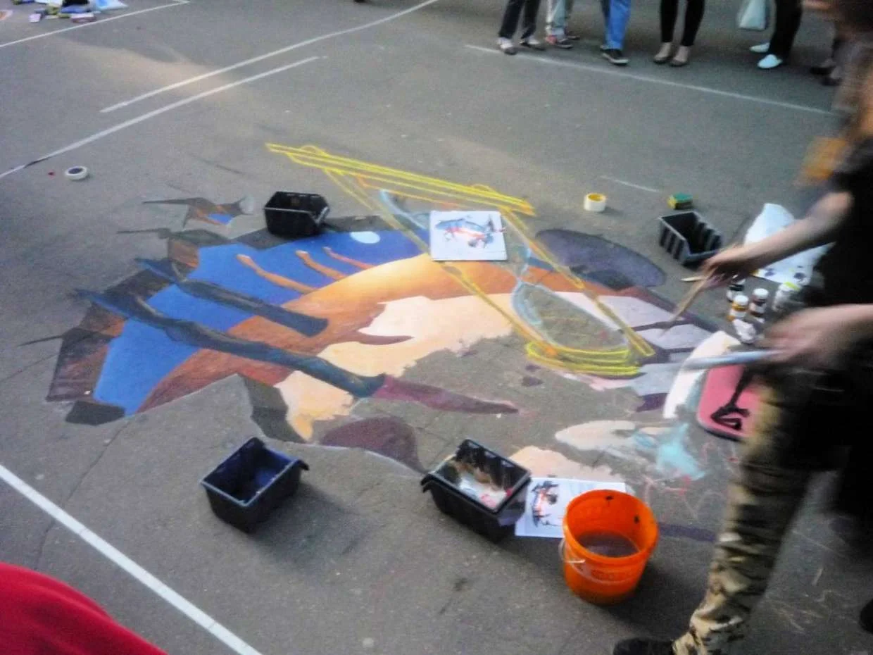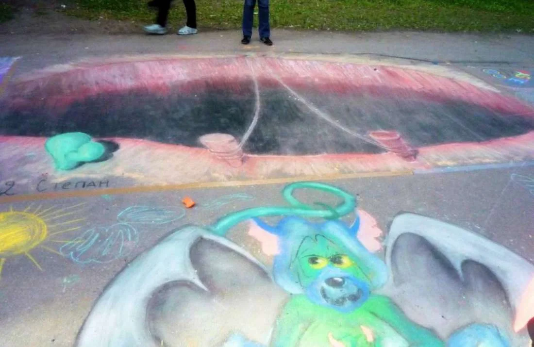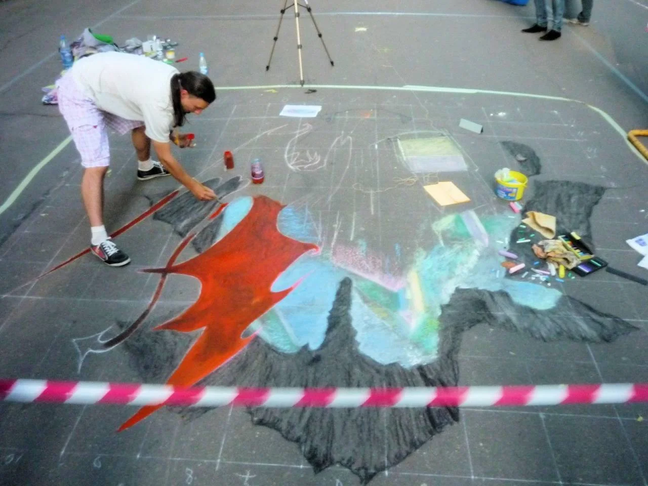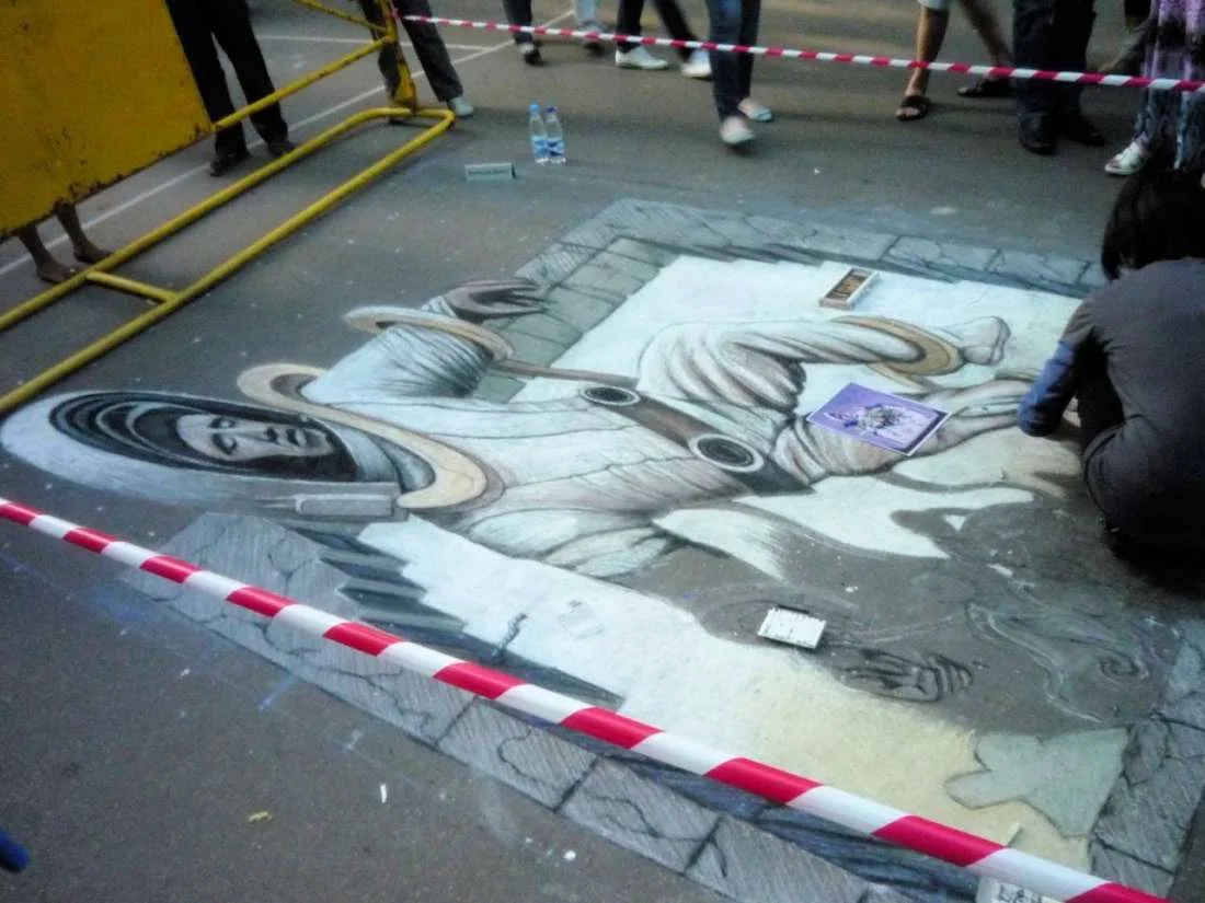 Сегодня в нашем парке проходил какой-то фестиваль.Играла музыка, давали бесплатный кофе. На асфальте были те самые 3д рисунки. Рисунков было много, но по настоящему 3д я увидел от силы 3-4. Остальные - так себе. Правда некоторые красивы и без 3д.