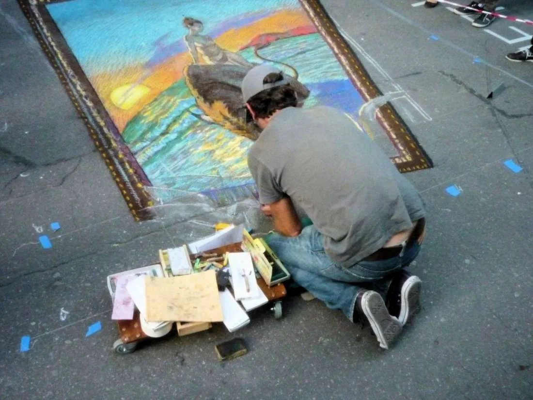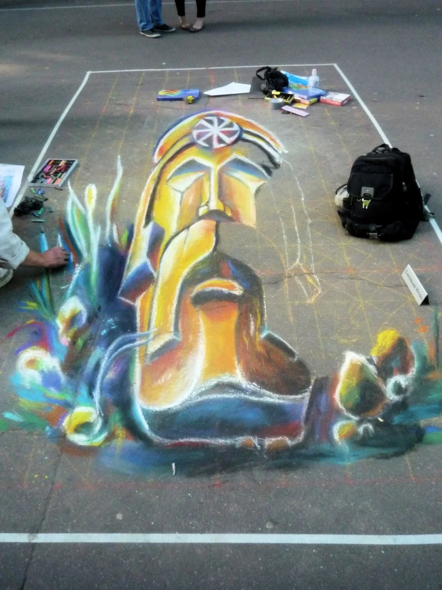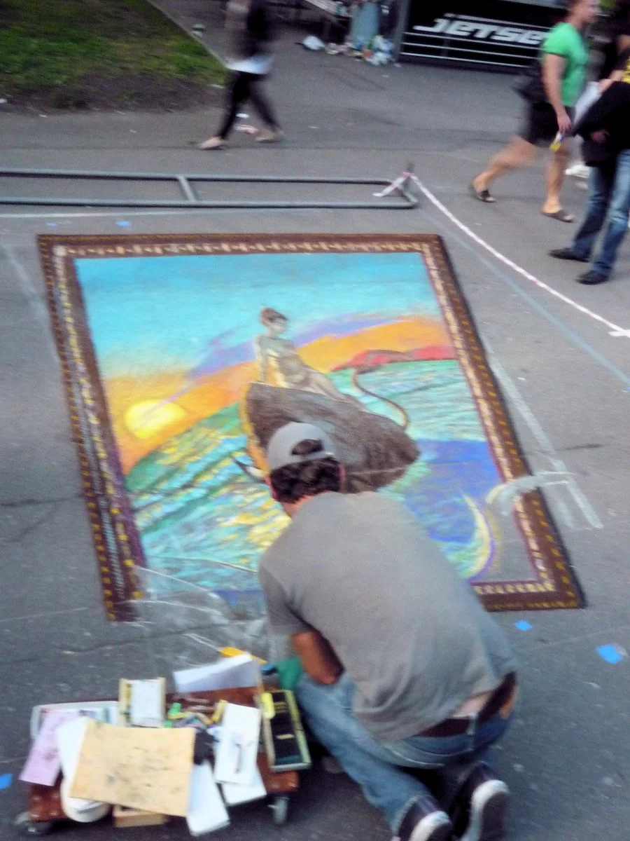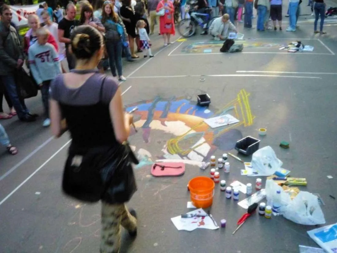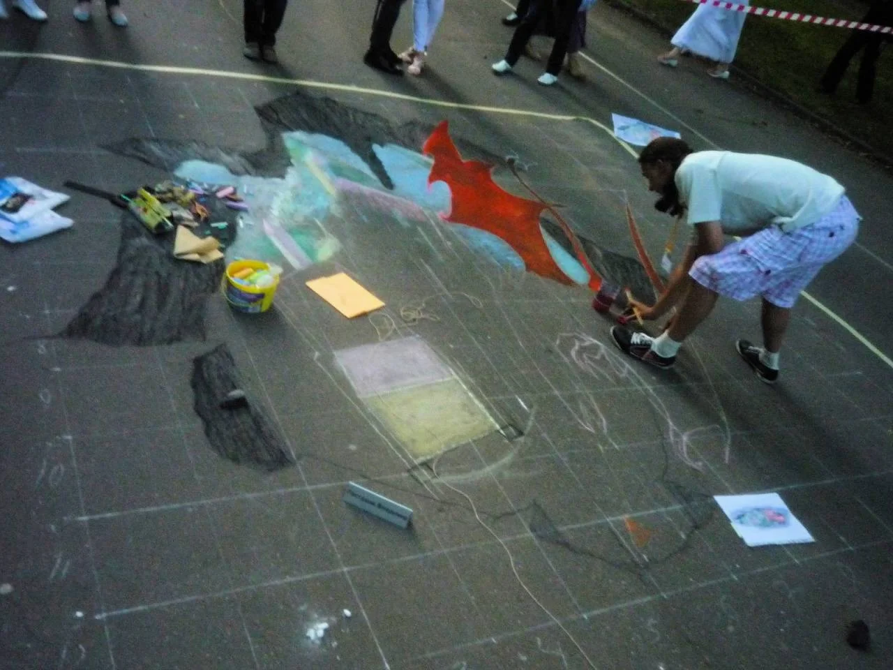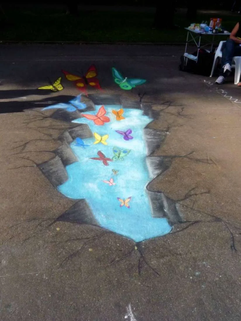 Сегодня в нашем парке проходил какой-то фестиваль.Играла музыка, давали бесплатный кофе. На асфальте были те самые 3д рисунки. Рисунков было много, но по настоящему 3д я увидел от силы 3-4. Остальные - так себе. Правда некоторые красивы и без 3д.