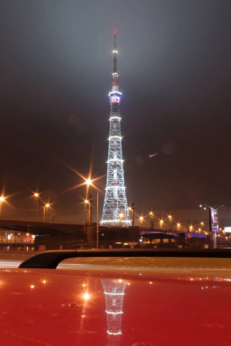 Уже совсем стемнело, и когда мы проезжали мимо телебашни, я не выдержал - ТАКОЕ и не сфотографировать?