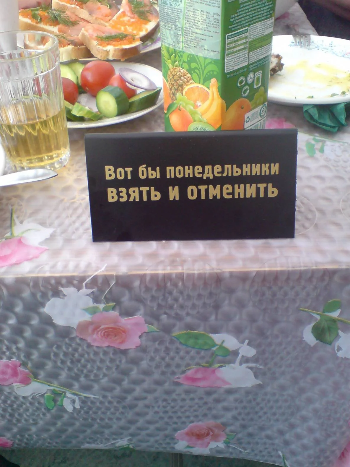 Подарили мне маленькую вывеску на стол, это с двух сторон, однако!