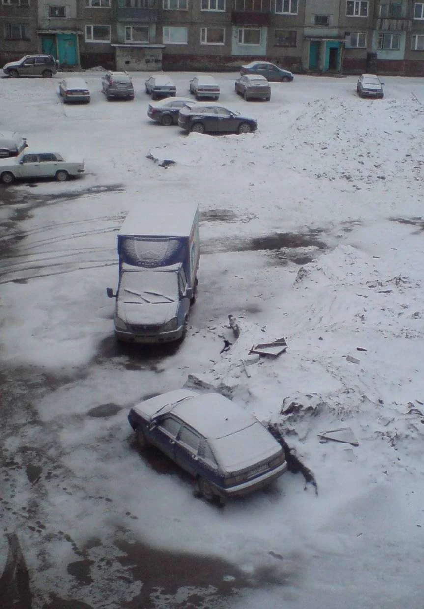 Сегодня я всё таки его сфотографировал, когда он отдыхал на лобовых стёклах машин, лавочке и клумбах) если присмотреться, можно увидеть припорошенные снегом молодые листочки на берёзах.