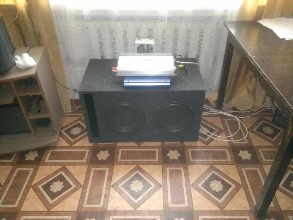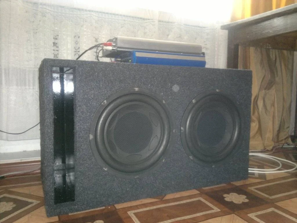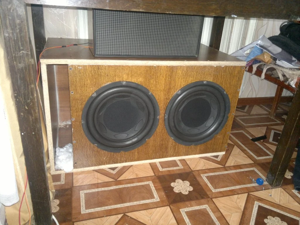 Вот собрал очередной саб) предположительно в будущую машину). А так пока дома соседей мучить). Саб очень бюджетный) но звук порадовал. Честно не ожидал такого, думал будет хуже от таких динамиков. Динамика два - 12-ти дюймовых. 300 номинальная и 800 максимальная мощность каждого, они двух катушечные по 4 Ом каждая катушка. Немного сделал им косметический ремонт) и сделал короб для них, осталось оклеить карпетом и нормально провода припаять к терминалу.