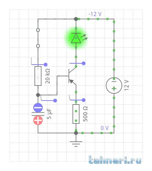 Мы только что выше говорили о коммутации схемы макета ЖД, там коммутируется только питание 12В ...Я на симуляторе прогонял эту схемку - выглядит красиво, именно так как описано выше с лампочкой. Только одно "но" - источник питания к ней д.б. подключен постоянно, а управлять включением/выключением нужно тумблером, который включен впослед с R1. Конденсатор С1 д.б. 5-50 мкФ.