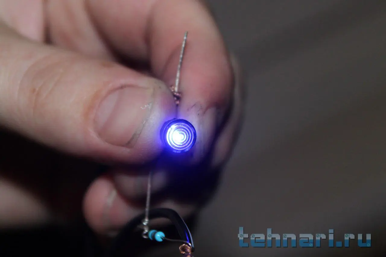 Меня интересует чем можно склеить светодиоды..... я пробовал как и говорил цианокрилатом, не особо был доволен..... а по поводу фокусировки, то вот фото пробного сборного светодиода..... в жизни более равномерное свечение.