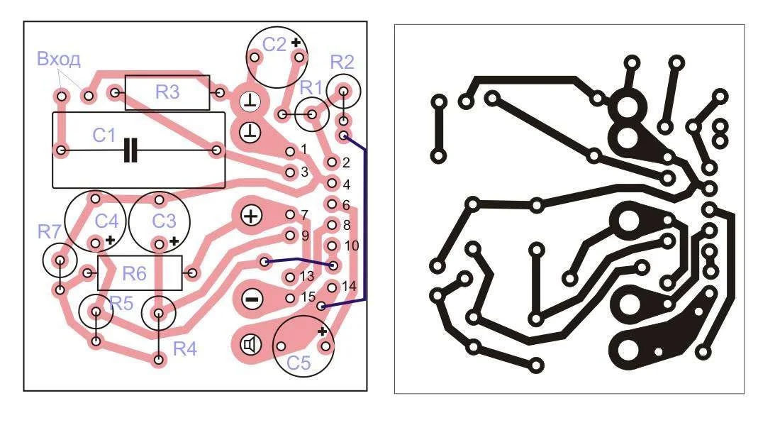 На схеме в правом верхнем углу две спаренные контактные площадки с обозначениями в виде перевёрнутых "Т" - это что, по-вашему? "Минус" в данном случае в другом месте.