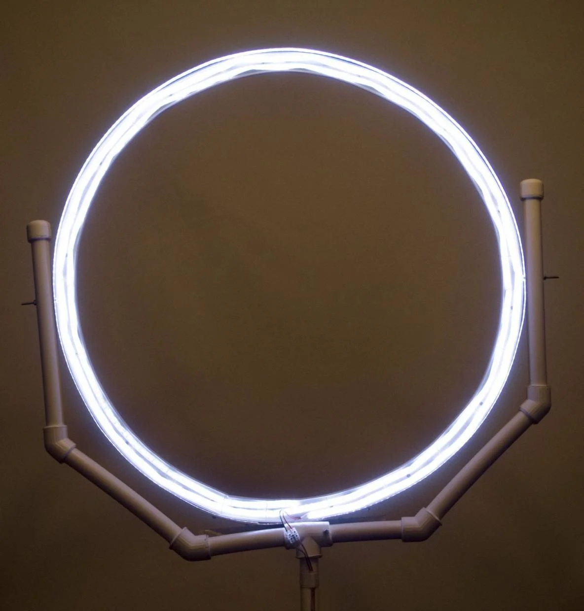 Я ничего не имею против кольцевого светильника, но так как сделано на видео - это полный стрём! Неужели нельзя было сделать нормальный светильник?