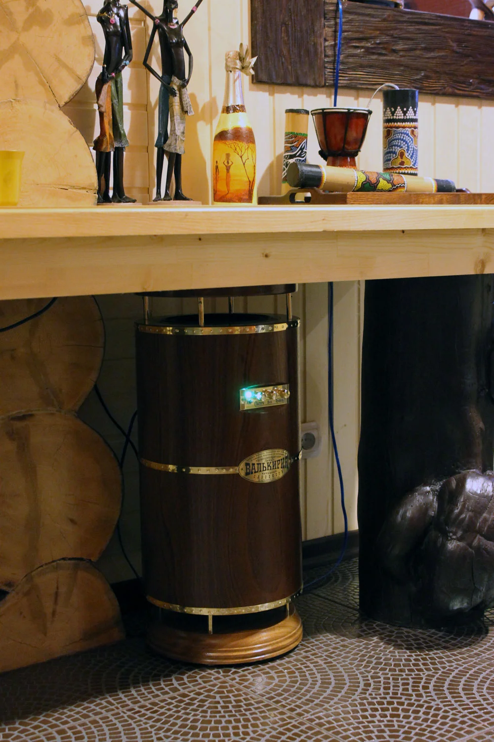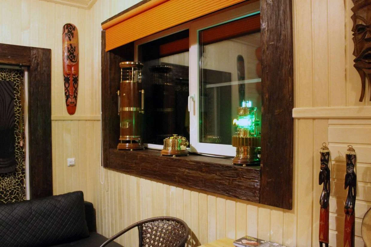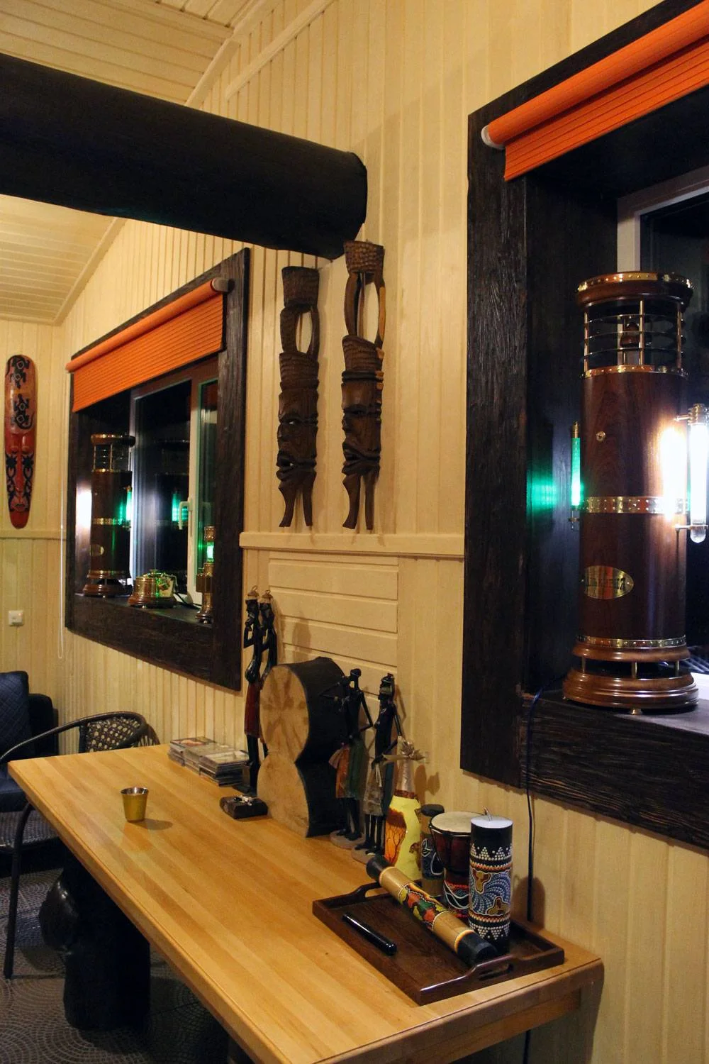 А это светильник, который я недавно делал. Он находится в бане, висит прямо над небольшим бассейном.