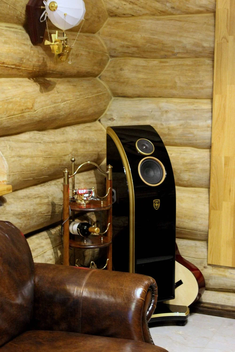 Тут можно усидеть гостиную, в которой находится усилитель с механическим индикатором спектра и колонками которые сделал Кирилл.