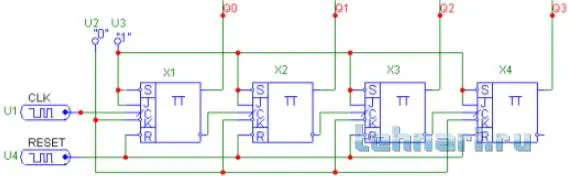 Поясняю еще раз. Из схемы последовательного переноса на jk триггерах с 1-j, 1-k,1-c,1-r входами сделать схему с параллельным переносом на тех же самых триггерах сохраняя колличество j,k входов, с возможным дополнительным входом.