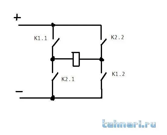 Собственно не могу сообразить как организовать кратковременную подачу разнополярного напряжения, для переключения контактных групп.