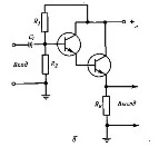 если входной транзистор пары Дарлингтона имеет коэффициент усиления, равный 120, а коэффициент усиления второго транзистора равен 50, то общее р составляет 6000. В действительности усиление будет даже несколько большим, так как общий коллекторный ток составного транзистора равен сумме коллекторных токов пары входящих в него транзисторов.