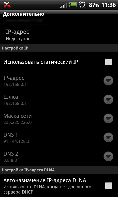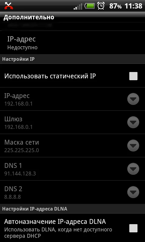 Сейчас почищу всё... да и к тому же, статический IP не активен.