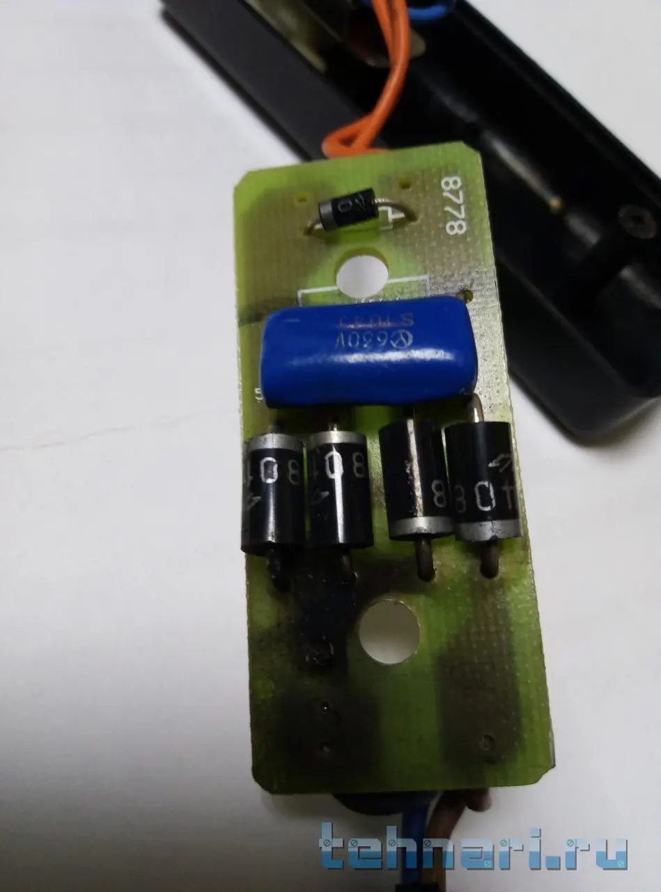 Дальше проверяйте мост , 4 больших диода , кондер , синий , 8778 .