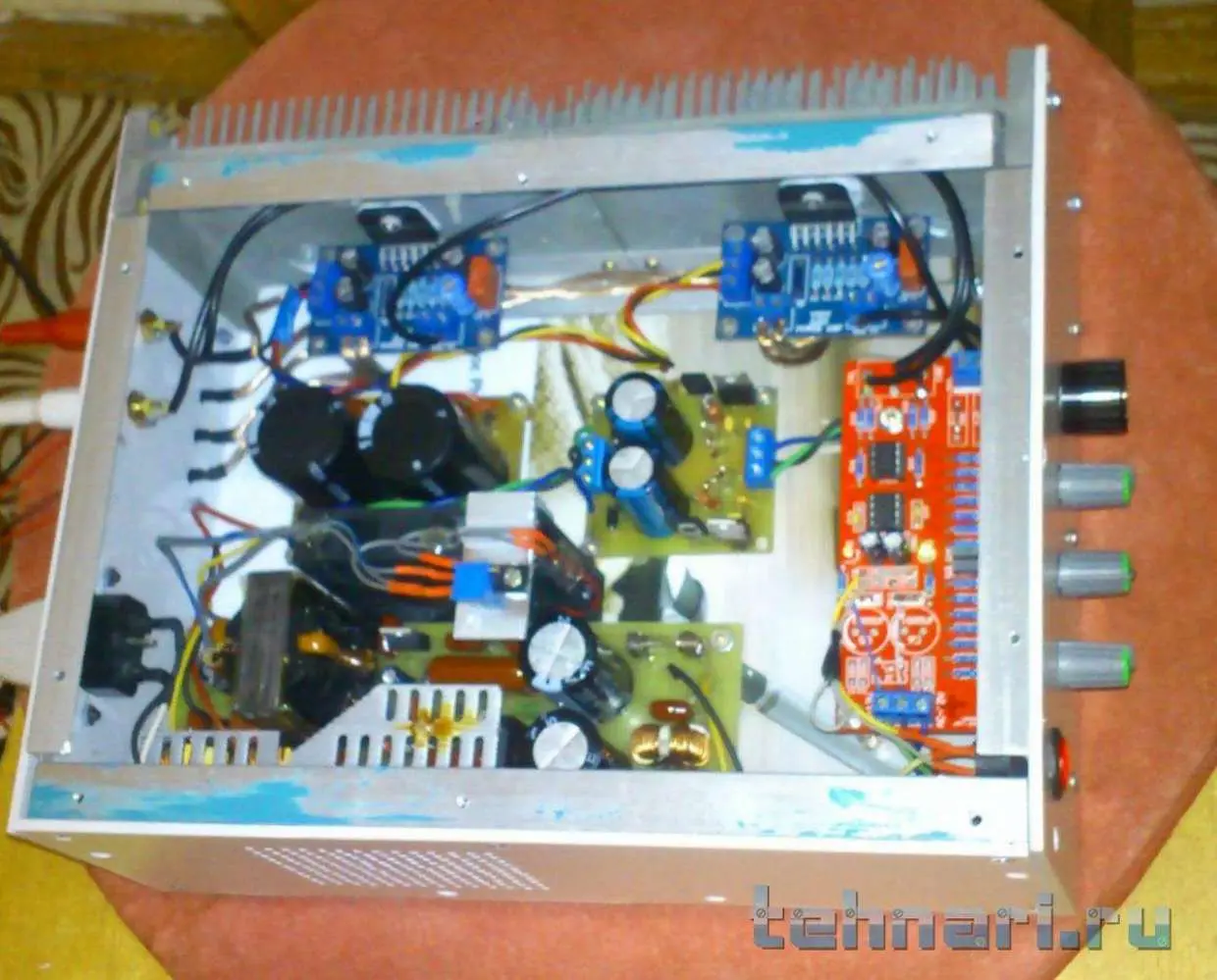 Самый первый усь собрал на двух тда 2050 однополярка с блоком питания от светодиодов, в пластиковом боксе для автоматов квартирных. Из четырех усей, он, пожалуй, самый тихий.