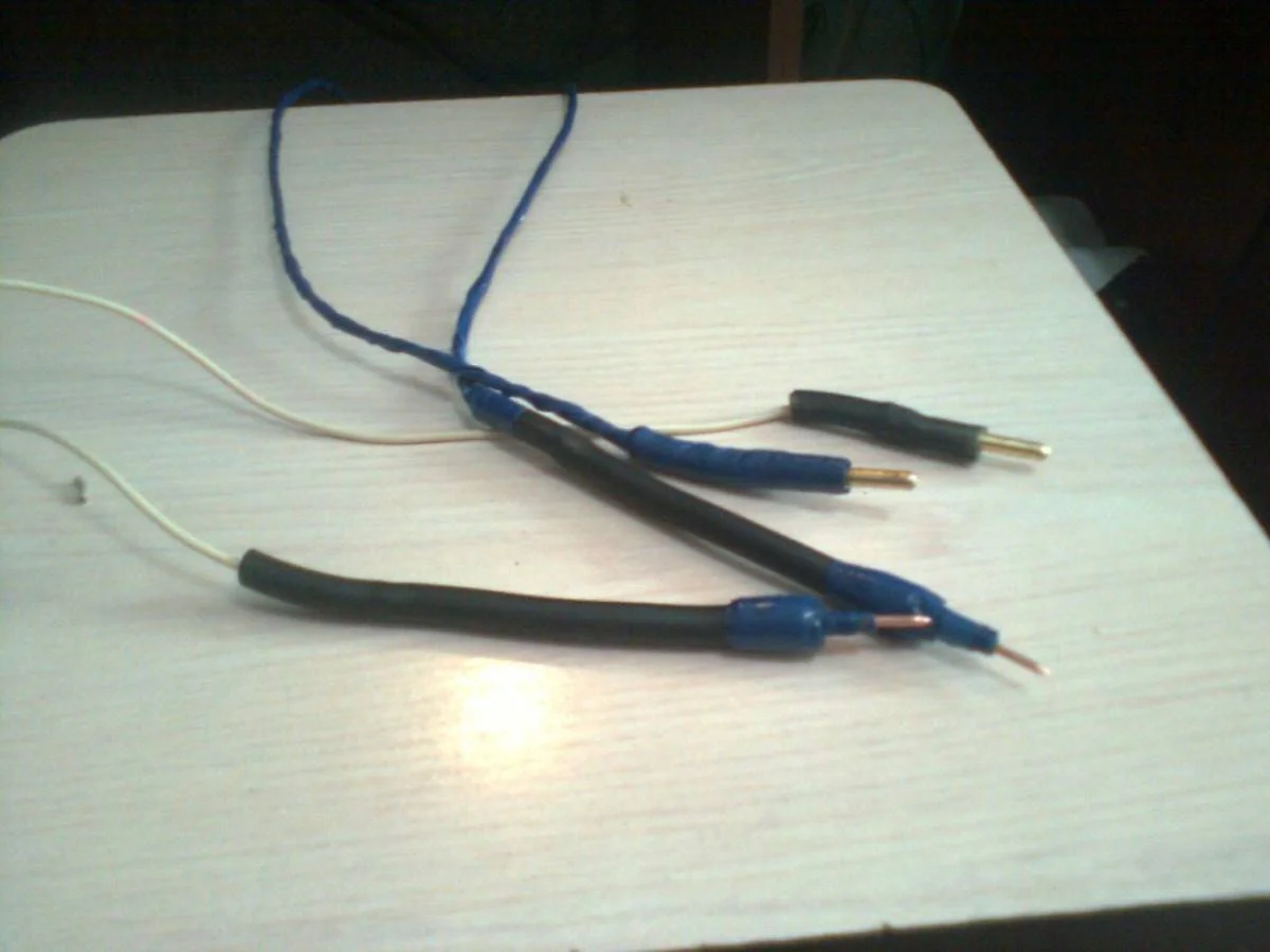 для того чтобы сделать новые щупы, нам понадобится, провода, резиновые трубки, кусочек кабеля большого сечения, и сетевая вилка с медными зубьями.