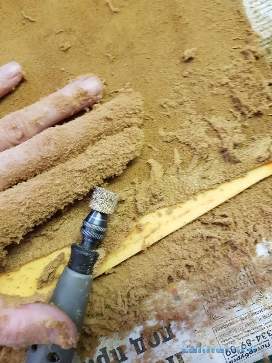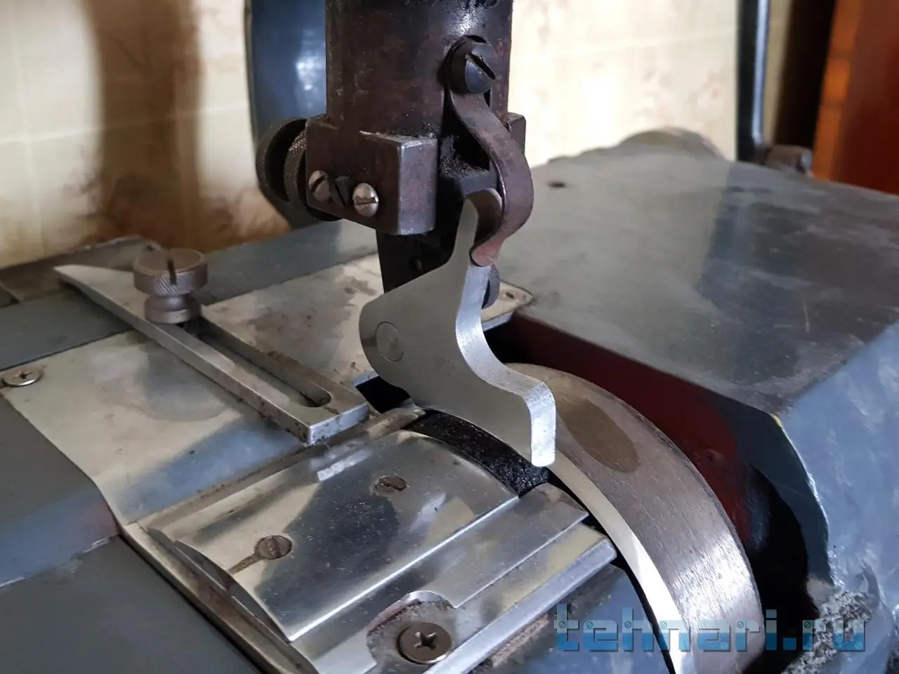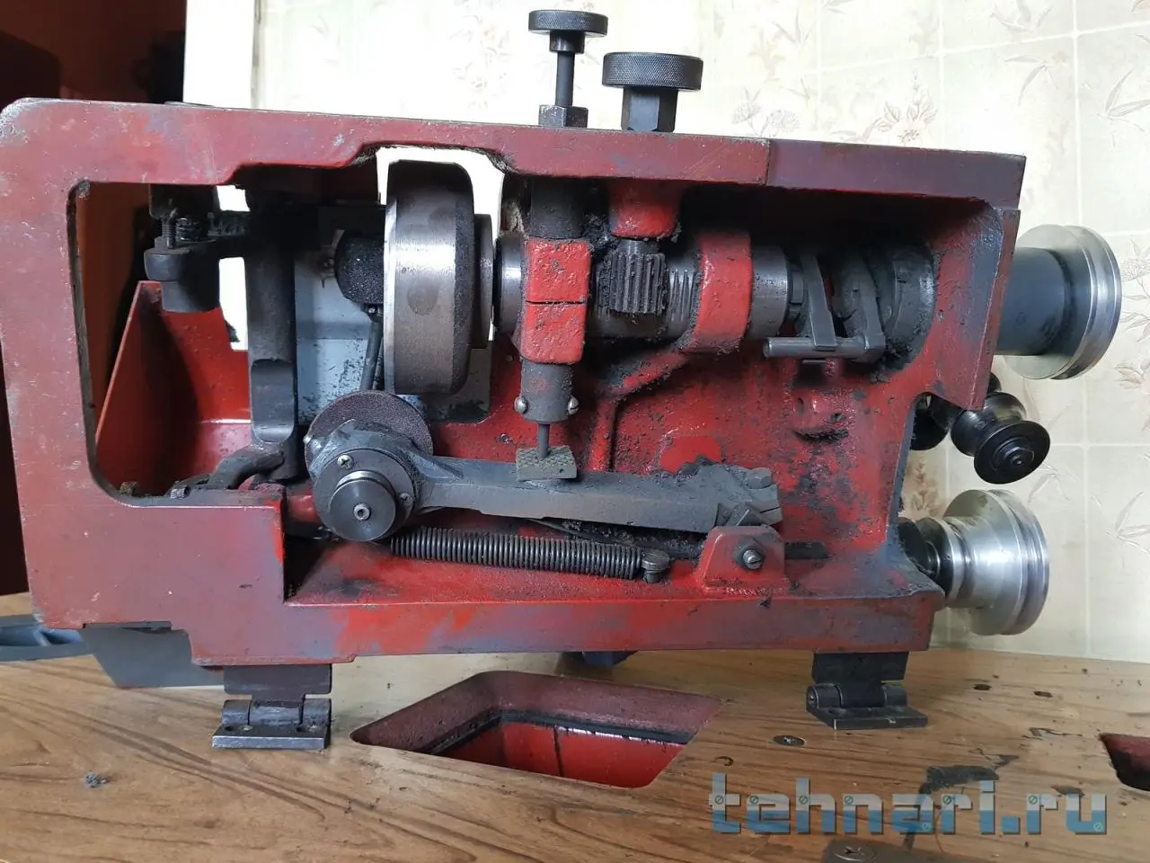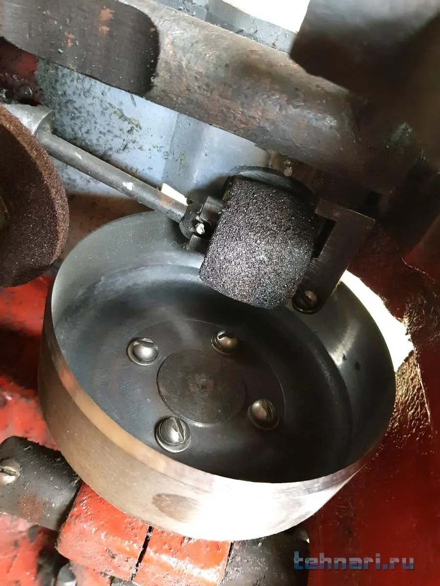 Машина представляет из себя платформу с ножом в виде чашки, подающий абразивный ролик и прижимающую лапку, это если вкратце.