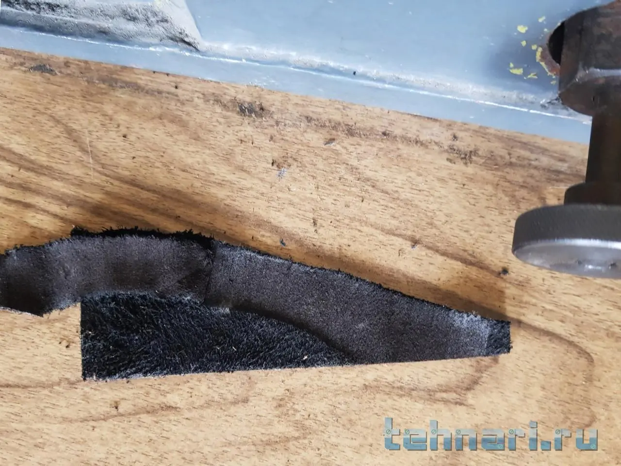 Ну а это то, что она делает. Кусок кожи протянул без движка, раскрутив валы руками
