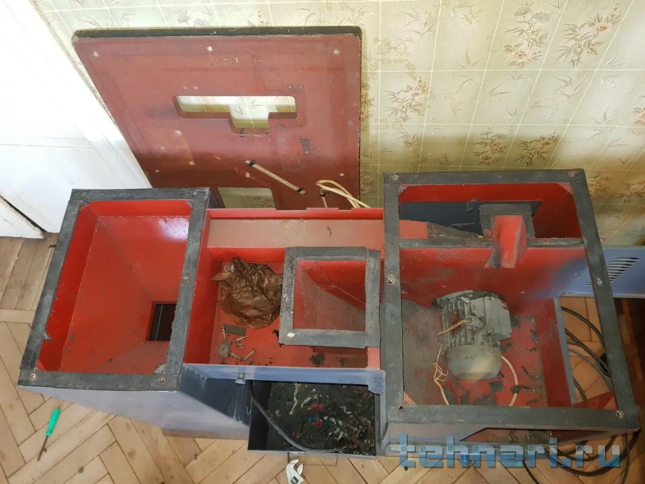 В машине предусмотрена вытяжка отработанного материала и ящик под него.