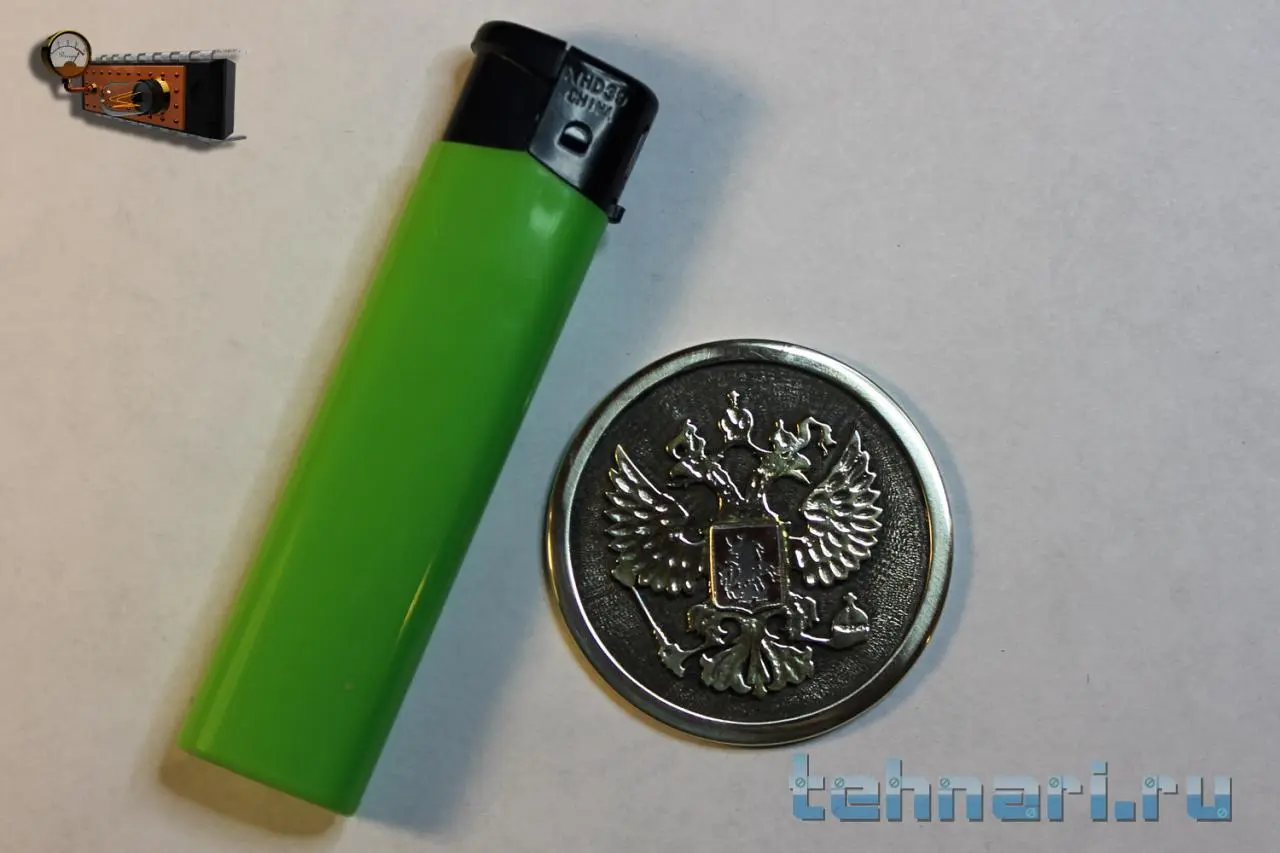 А это для масштаба. Диаметр шильдика сорок миллиметров.
