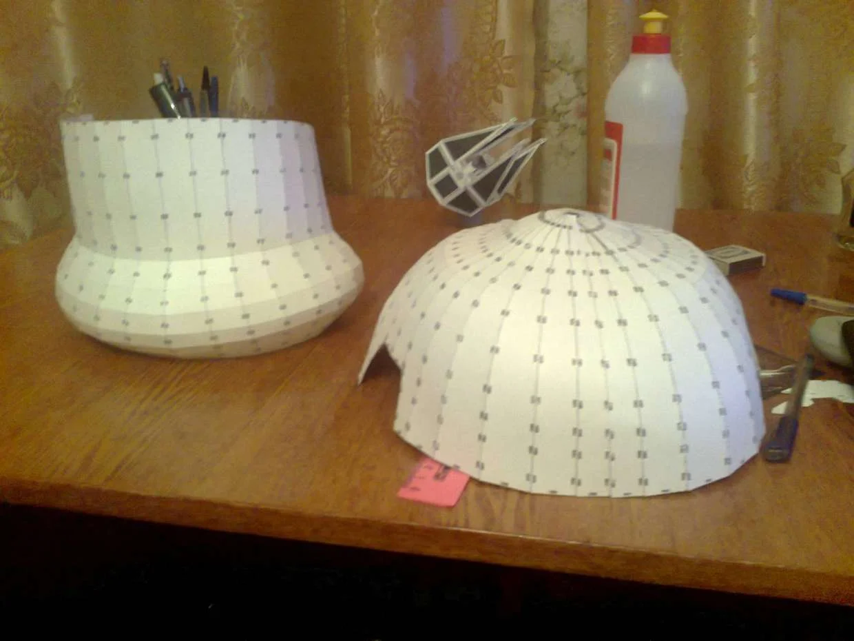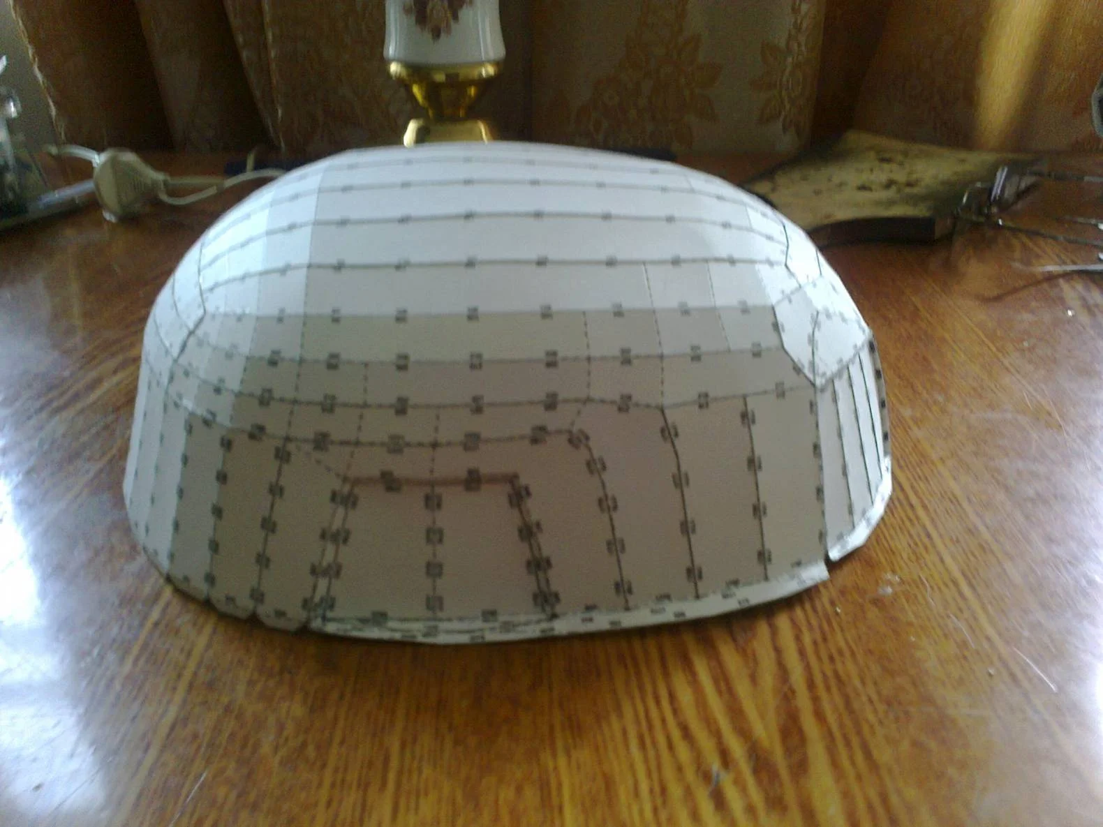 Сначала я делал шлем по одной развертке. То ли руки не из того места растут, то ли тогда был не мой день, но вместо верха шлема штурмовика получился шлем древнерусского витязя...(Фото 1)