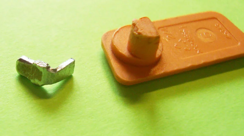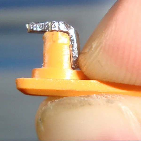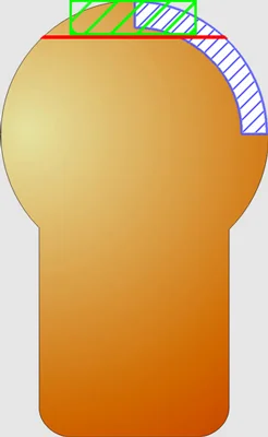 Я хочу разрезать по красной линии и загнуть туда металлическую пластинку(зелёная)