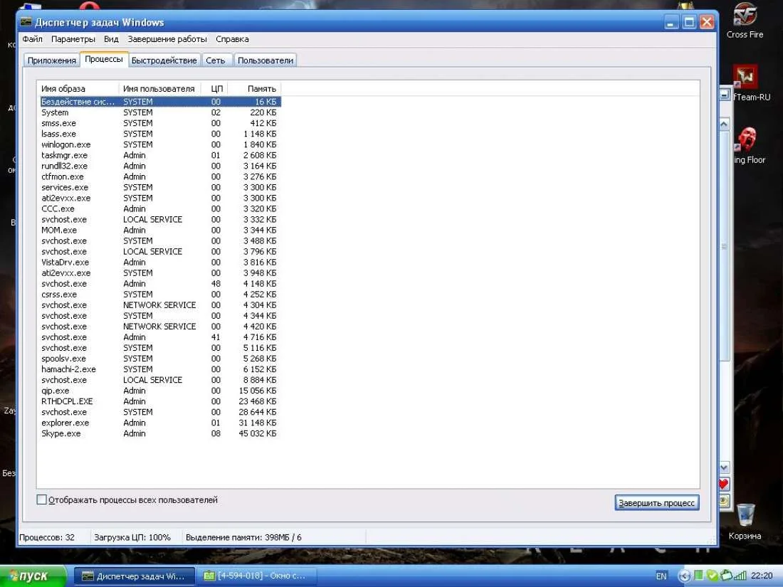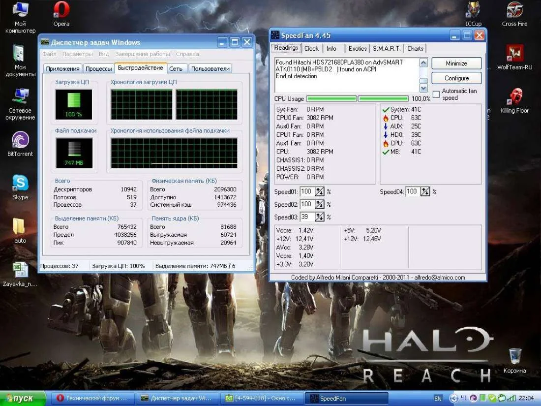 Pentium 4 3.2 гцц. 2 гб озу .жд 80 гб . radeon x1650 pro 256 mb. При том что не какие прогаммы не запущенны а играть вообще не возможно. Началось не давно до этого было все норм. Терма паста была заменина .Кулер на проц стоит универсальный Cooler Master Hyper 212 EVO прилегает хорошо.
