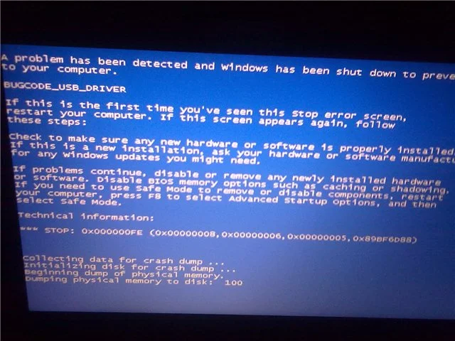 Синий экран и ошибка 0x000000FE