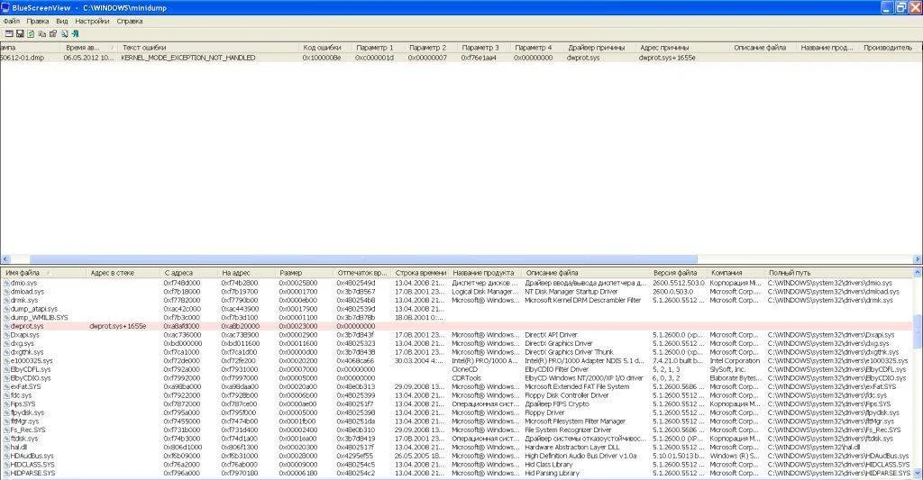 KERNEL_MODE_EXCEPTION_NOT_HANDLED 0x1000008e 0xc000001d 0x00000007 0xf76e1aa4 0x00000000 dwprot.sys dwprot.sys+1655e 32-бит C:\WINDOWS\minidump\Mini050612-01.dmp 1 15 2600