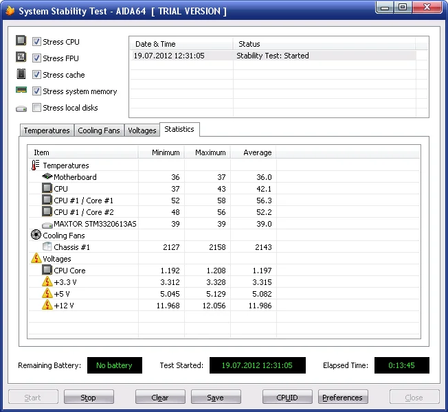 Ну вот я начал делать, пока работает, но никакого представления о нормах флуктуаций диаграммы не имею. значит я выбрал motherboard; cpu; cpu core#1; cpu core#2; maxtor (хард). будем ждать