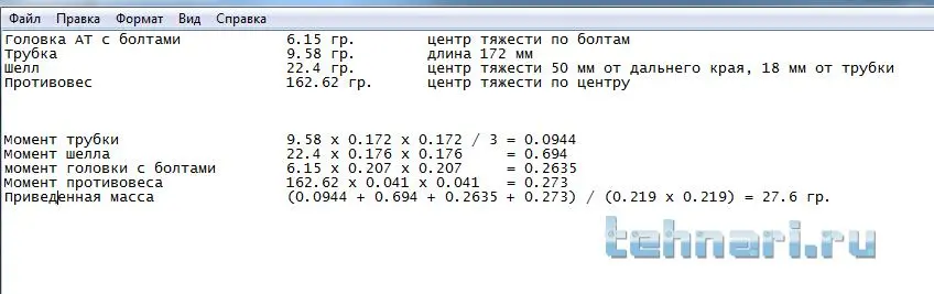 в прочем, если подставить в ваши, Sinus, расчёты мои данные по противовесу 110гр и 0,045м то эффективная масса всё равно остаётся большой - 26,6.