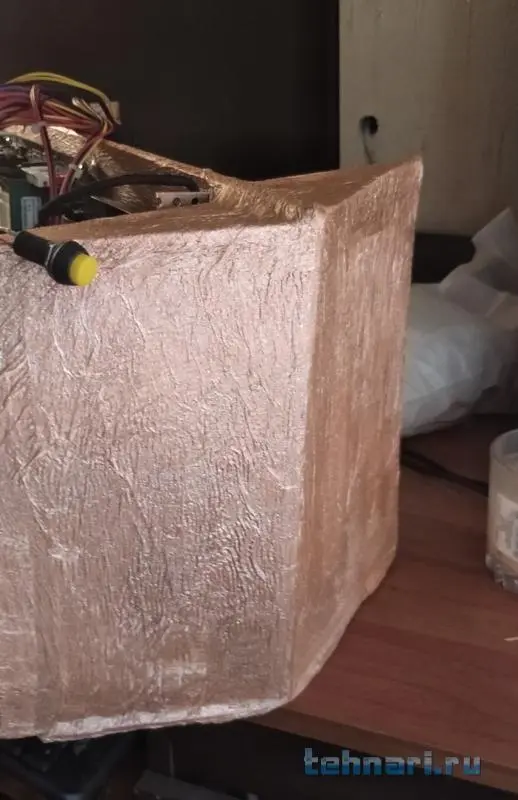 И вот что получилось. Состав корпуса, оргалит, бумажные салфетки, уголок пластиковый клей столярный клей пва и краска.