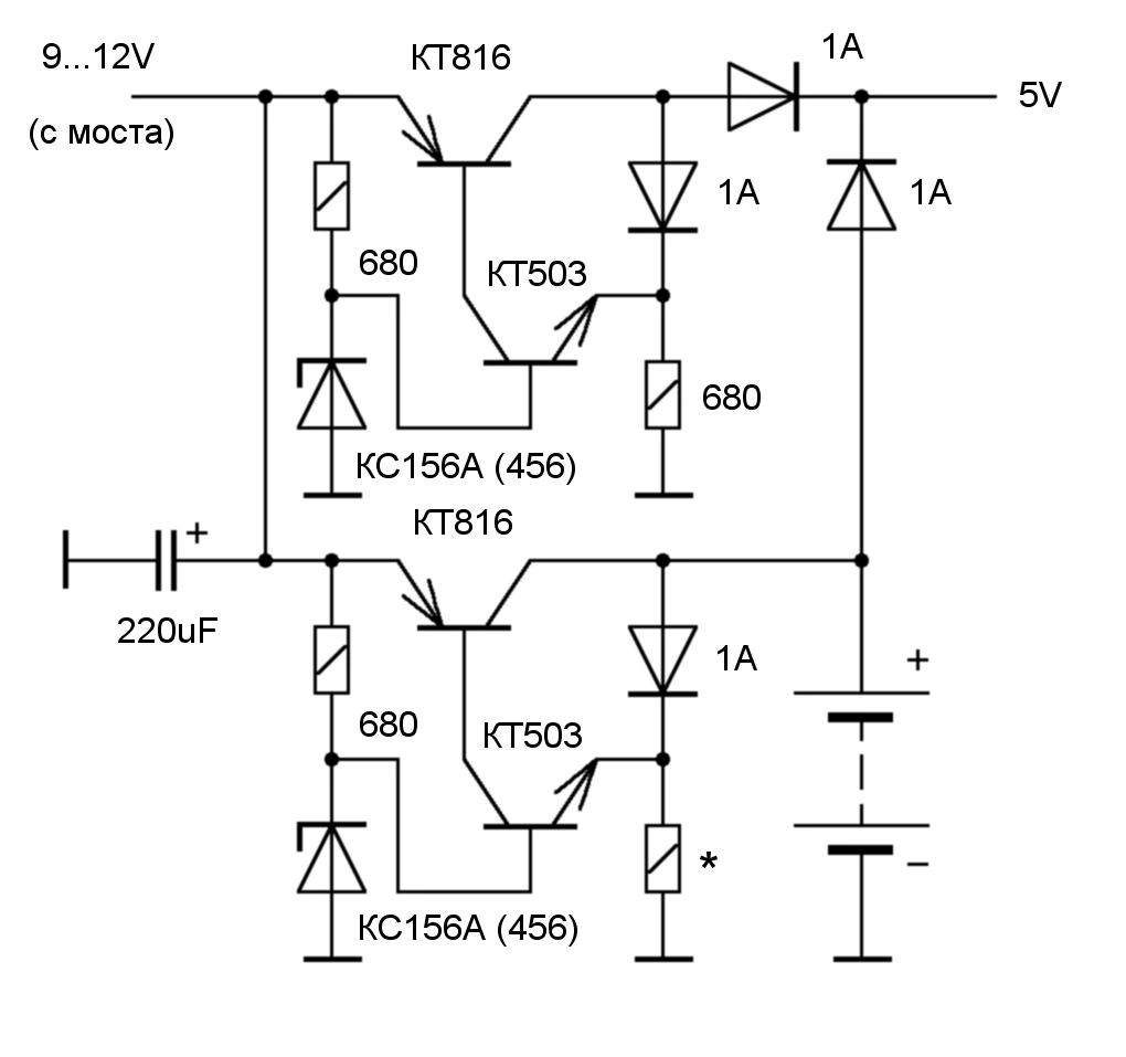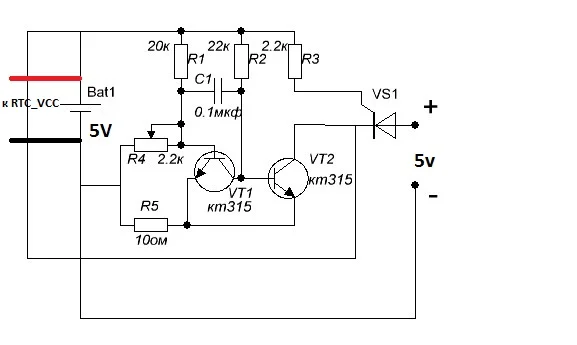 Нужна схема для электронных часов чтоб когда они работали от сети аккумулятор который стоит в них заряжался когда зарядился то отключался от зарядки, а когда сети нет то часы работали от аккумулятора. Работают от 5вольт Помогите сварганить схемку