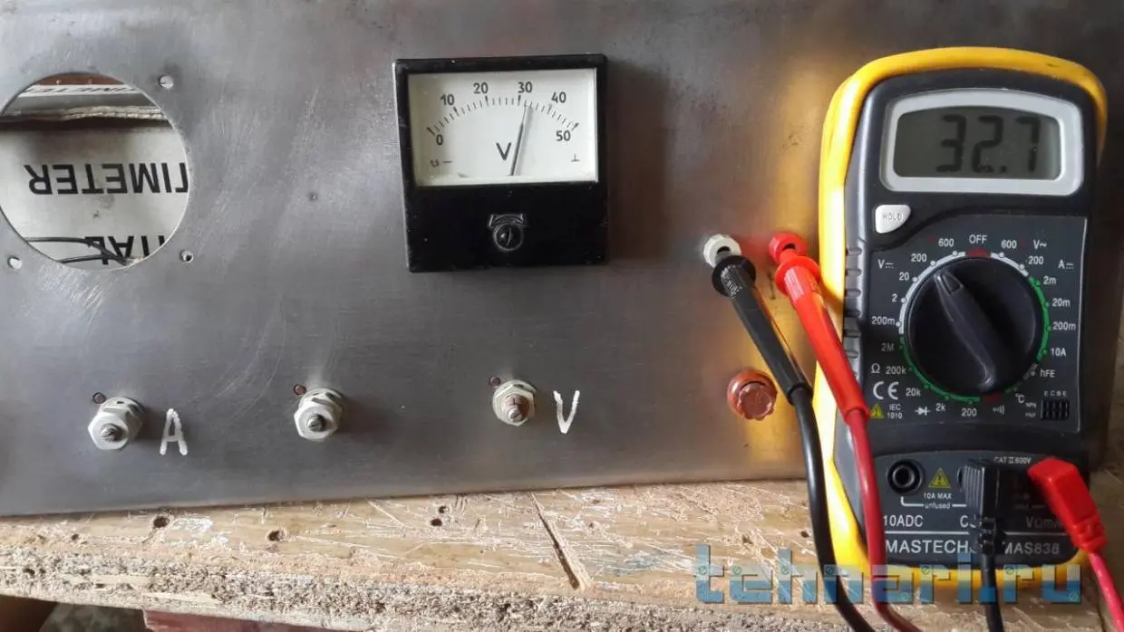 На 1 картинке регулятор тока и напряжения на максимуме и показывает 32,7В.