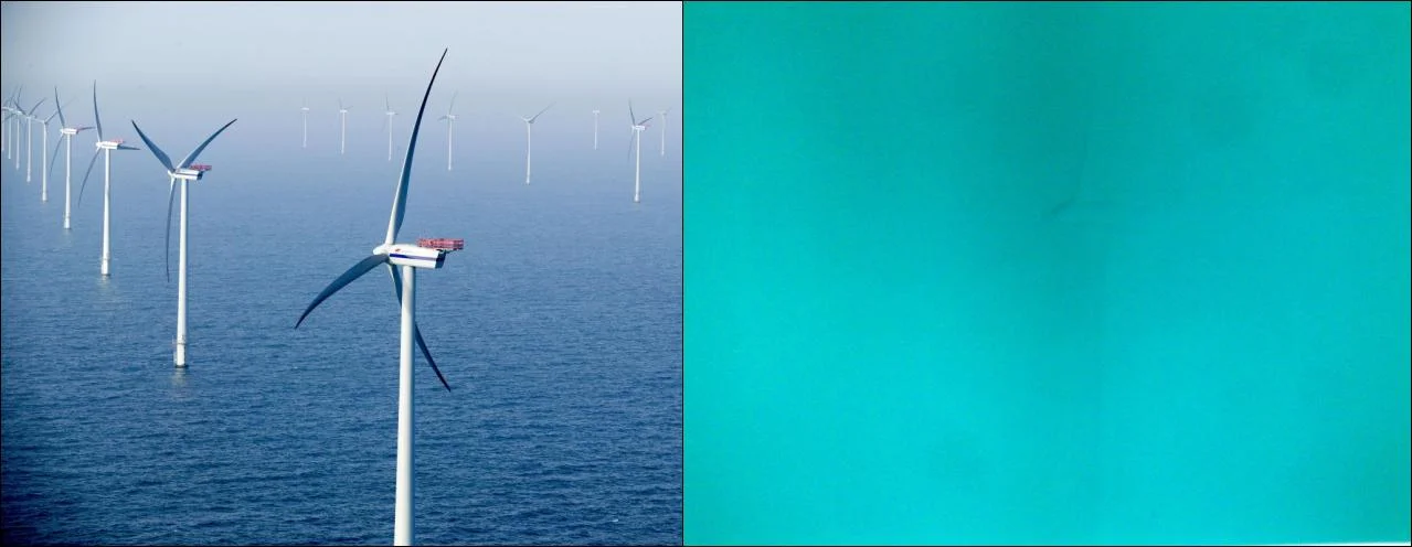 Собственно всё видно на изображении. Слева фоновый рисунок который у меня стоял, а справа фотография просто зеленого фона и того что осталось на мониторе после этой картинки. То есть четко видны очертания ветро-генератора, который изображен на первой картинке. На самом деле всё намного хуже, чем на фотке. Очень заметно.