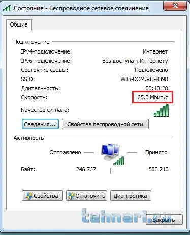 Проблема такая: настраиваю на ноутбуке wifi (устанавливаю драйвер, выставляю настройки адаптера) и в свойствах подключения показывает скорость подключения (максимальную, я так понимаю) 150 Мбит\с. Но буквально стоит мне открыть браузер, то ли драйвер слетает, то ли настройки сбрасываются, Скорость становится 65 Мбит\с (иногда бывало получалось даже замерить скоростьtehno014) Смотреть скрин.