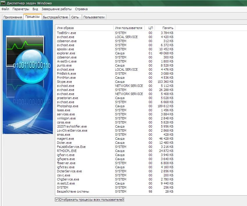 Представляю Вашему вниманию полный список процессов и данные компа.