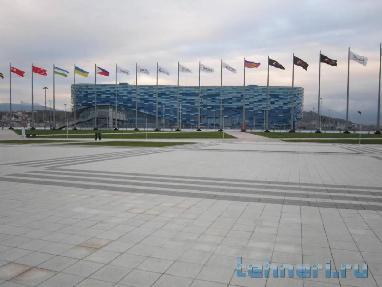 На этом фото, где справа стеклянное здание у берега, тоже пустое.