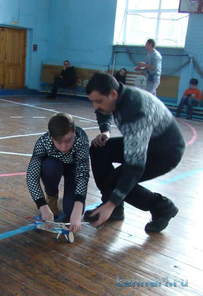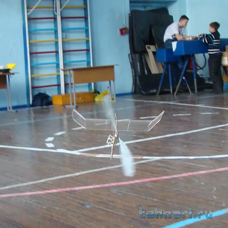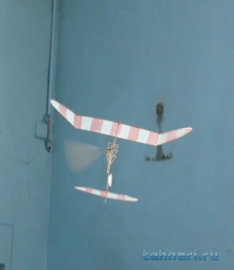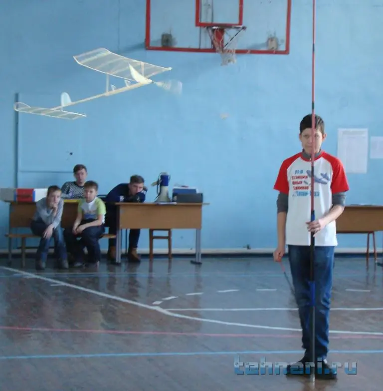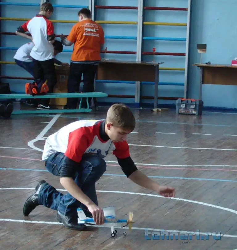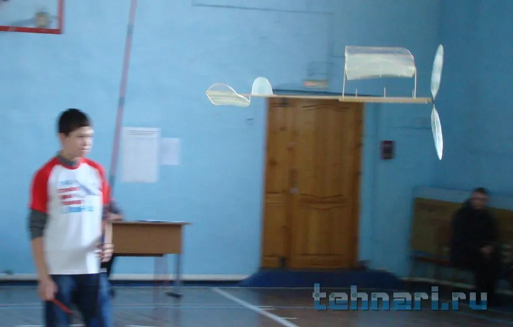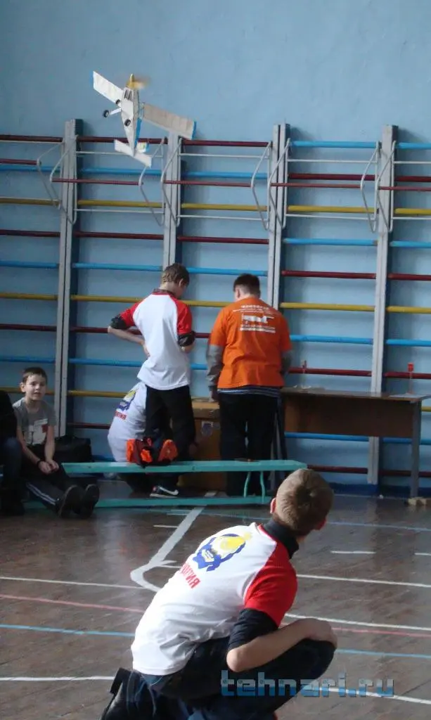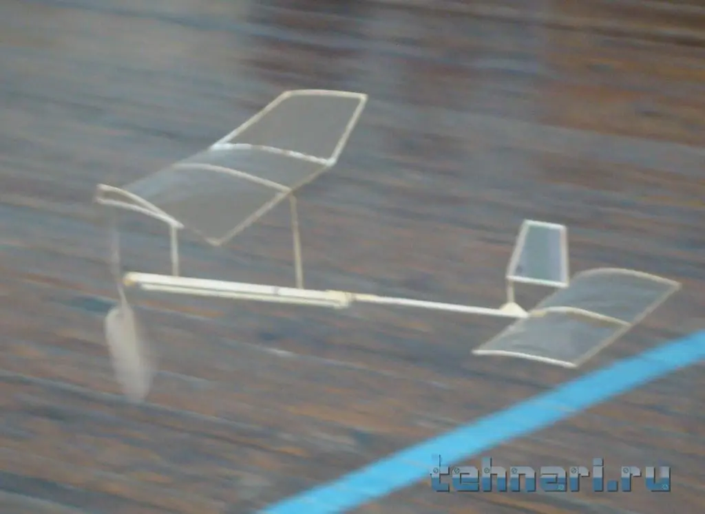 Настройка управляющих поверхностей (стабилизатора и руля направления) позволяет совершать модели полет по кругу с постепенным подъемом к потолку спортзала и обратным спуском.