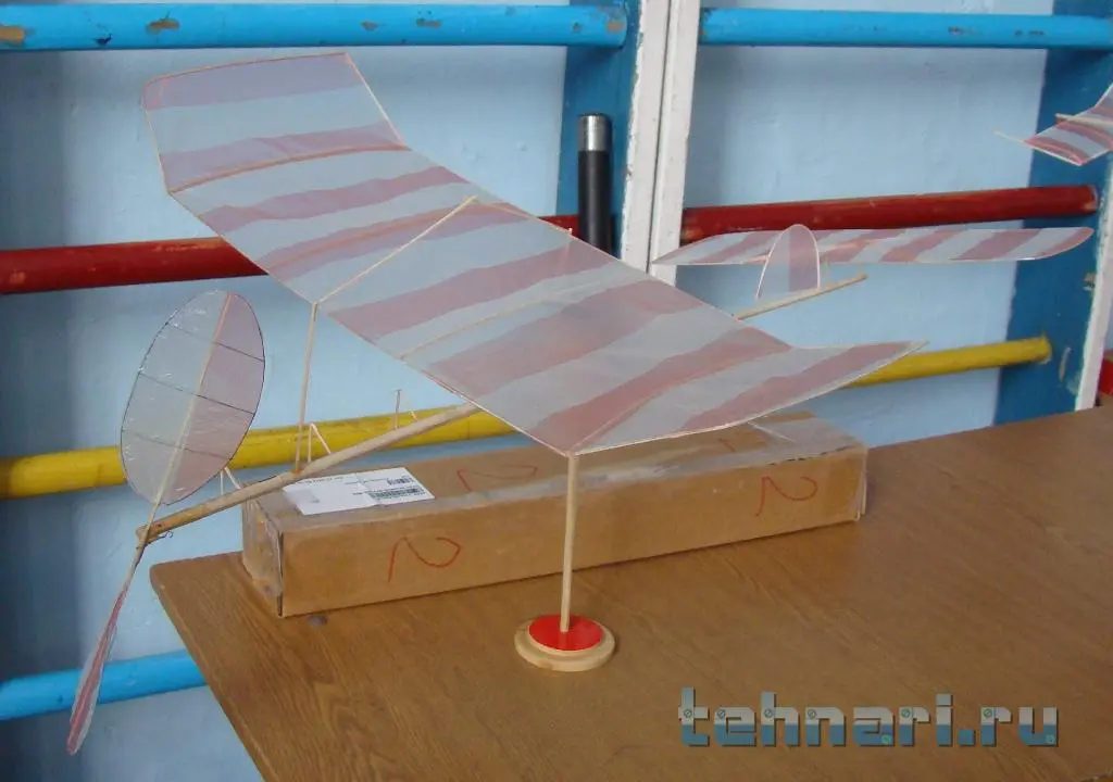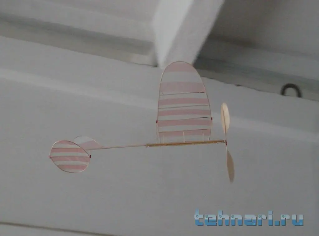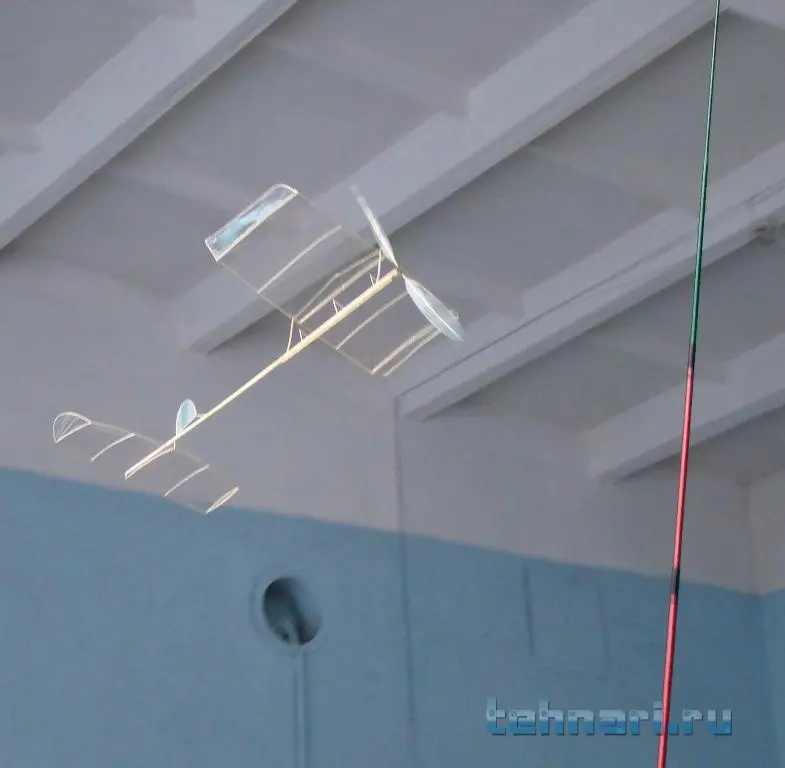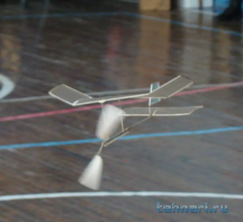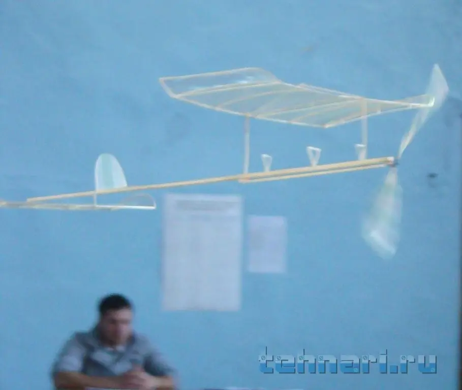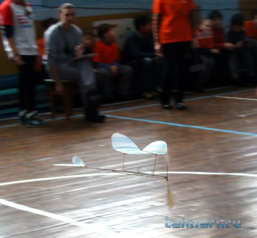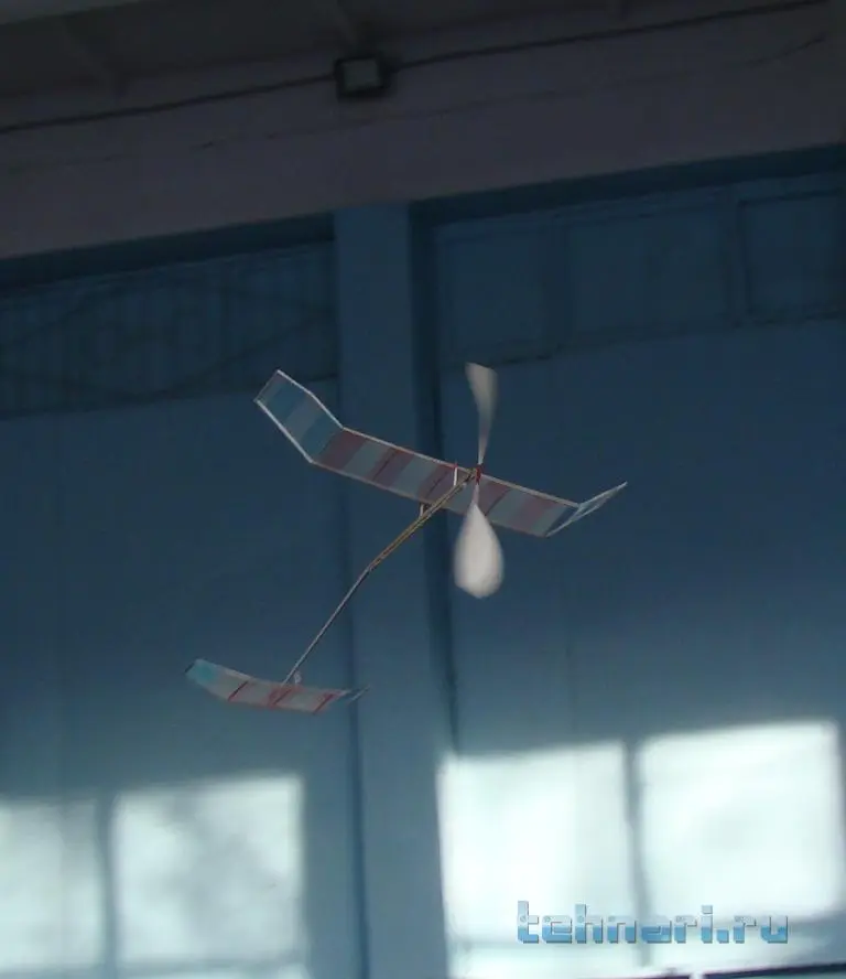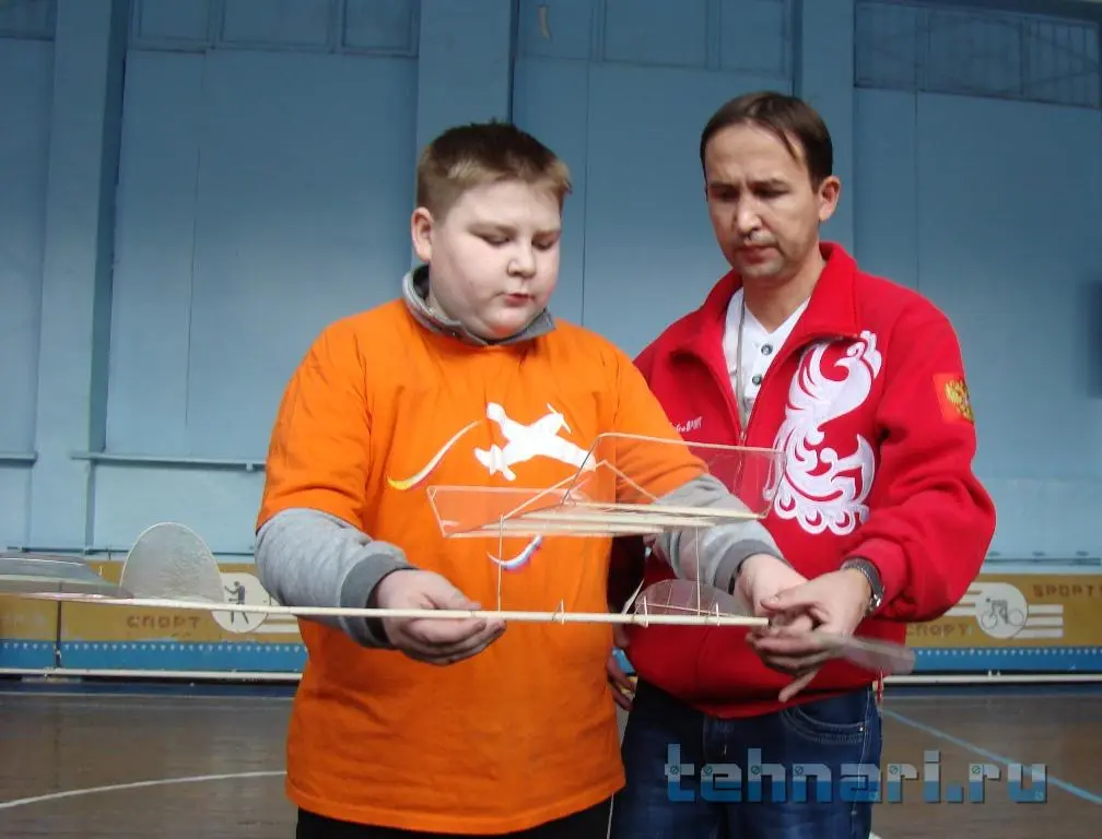 Настройка управляющих поверхностей (стабилизатора и руля направления) позволяет совершать модели полет по кругу с постепенным подъемом к потолку спортзала и обратным спуском.