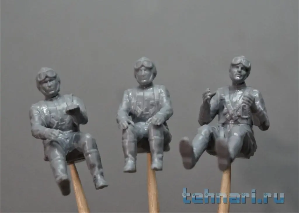 А теперь насаживаем экипаж на зубочистки и готовим к процессу покраски, который будет происходить уже завтра.