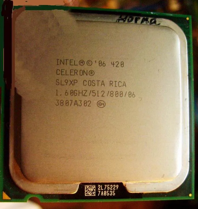На корпусе нет этой надписи. Потом скопирую на работе напишу. Но корпус и контакты один в один, выпуск более поздний. С ним не работает. А вот нашел проц, где написано на корпусе, только не LGA775 а LGA721 (по памяти, если не ошибся), запустился. Все работает, в биос зашел, все видит. Начал систему ставить, - облом, идут сбросы установки. Плохо что процессоров такого типа у меня не ахти много, возможно просто не подошел. Пришлось эту плату отложить. Наверное отправлю обратно по рекламации. Взял другую плату по памяти P5P800 ASUS. В ней этот процессор заработал. Нужно наверное на толчке пару две таких процев купить, тогда проще будет экспериментировать.