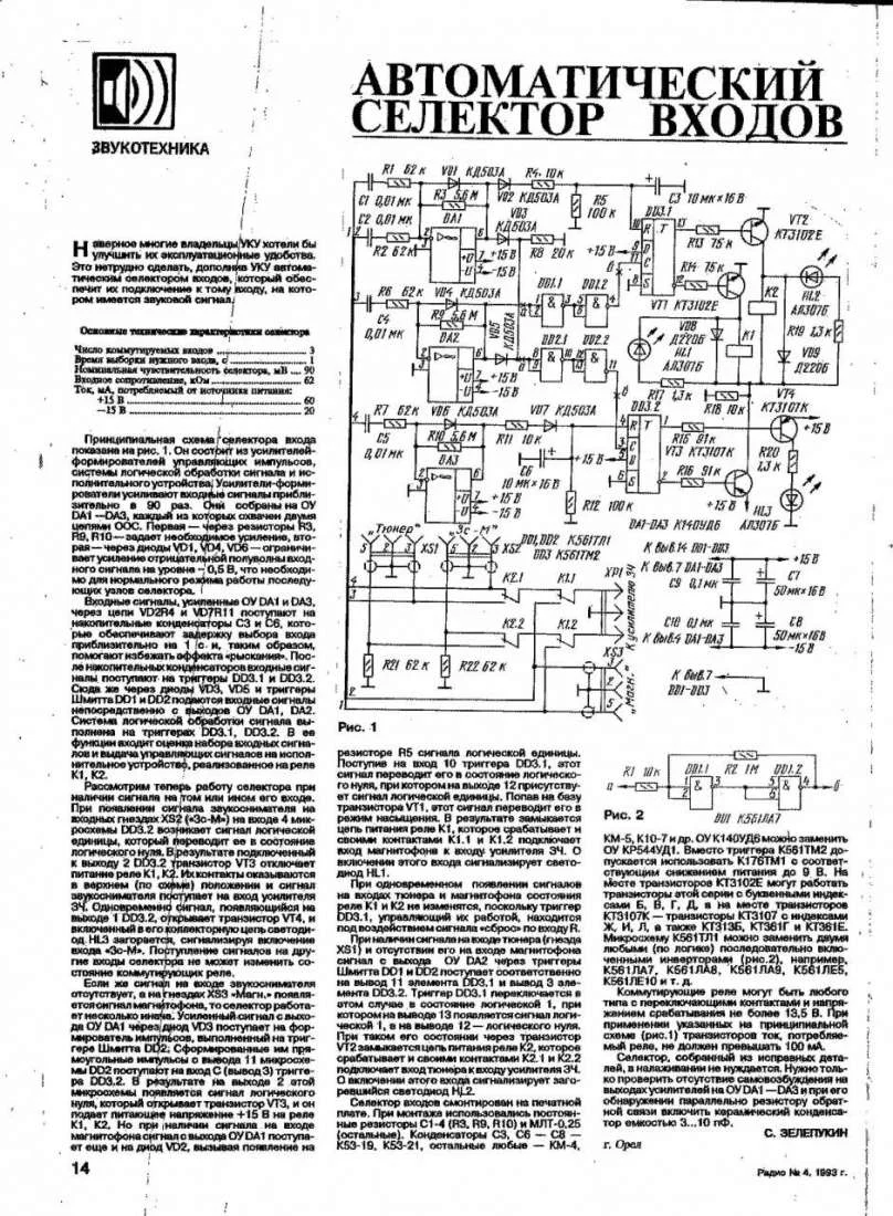 Схема, возможно, покажется сложной, но такой коммутатор сам подключает к усилителю источник, на котором присутствует сигнал.