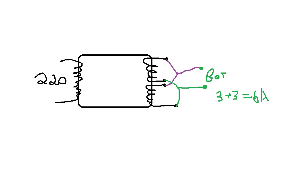 Так в чем проблема,начало с началом,а конец с концом.3+3=6,Средняя точка это конец одной обмотки и начало другой.