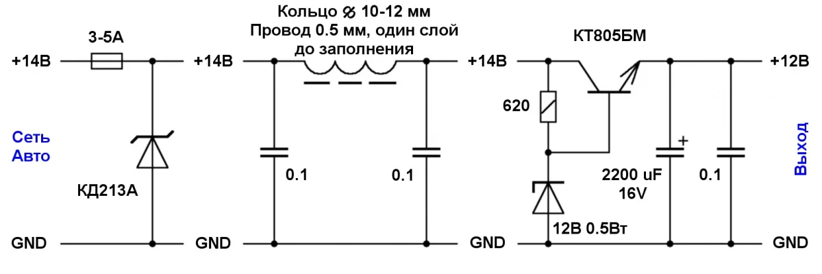 Стабилизатор напряжения для питания 12-ти вольтовых устройств