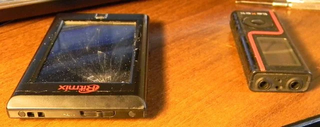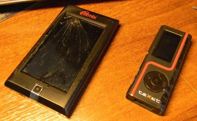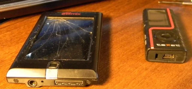 В общем, сейчас у меня уже четвертый плеер. Третий, не прожив и полугода (первый - 2 года, второй - полтора, третий - меньше полугода... четвертый надо поберечь, кажется...), сломался совсем, не выдержав падения на пол, и ныне, лишившись корпуса и экрана и замотавшись с ног до головы в скотч, служит неэстетично выглядящим и крайне неудобным, но очень ярким фонариком. Удобно, когда надо залезть за системник и понять, куда втыкать провод. Неудобным - потому что, во-первых, настройки остались те же, что и перед смертью, а потому дисплей быстро гаснет, а во-вторых, контакты кое-где отошли, и чтобы он светил, приходится нажимать. Но и так сойдет =) Когда-нибудь можно будет им заняться, но не сейчас - не умею.