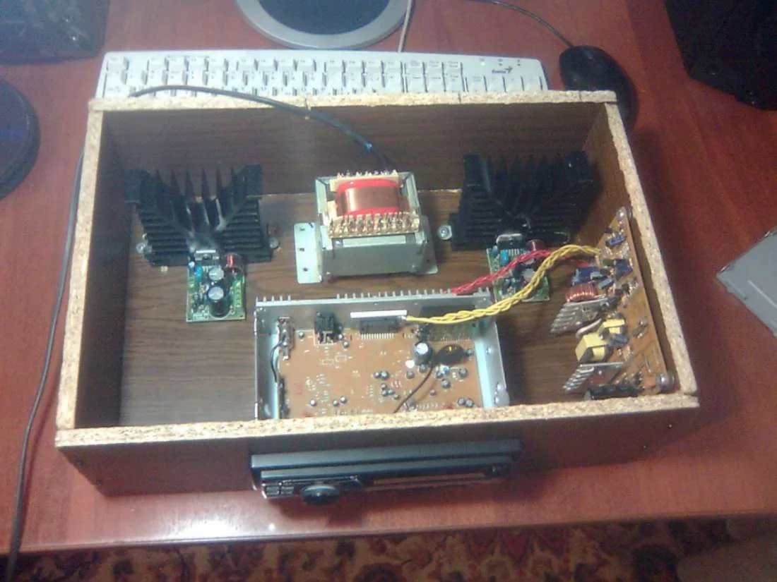 Планы немного изменились, так что я свою автомагнитолу буду использовать для снятии сигнала с USB, AUX, и Радио)) Для магнитолы я специально поставил блок питания (на 200 ватт) для питания магнитолы))