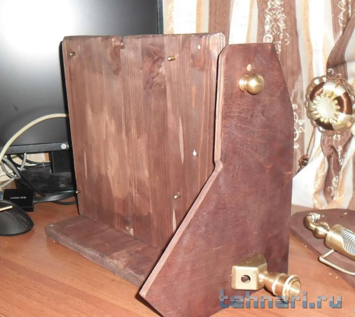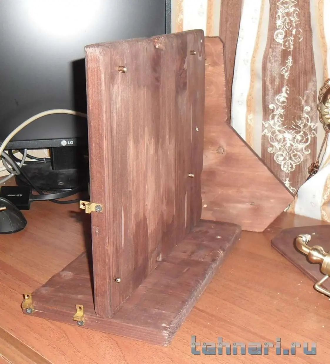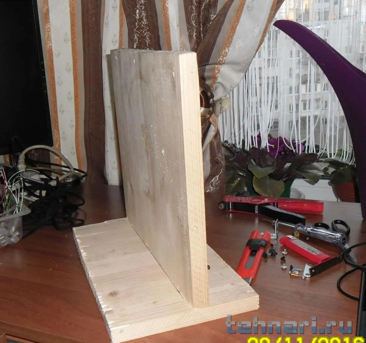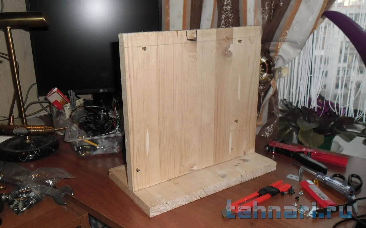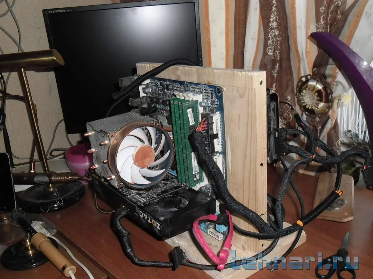 После недавнего ремонта, остался кусок мебельного щита. Пару лет назад, собирался собрать компьютер, в итоге собрал. Но осталось железо ,материнская плата и процессор.