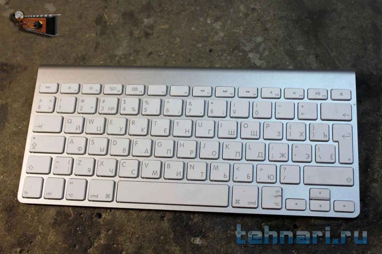 Жила-была клавиатура Apple, и всё было бы нормально, но с высочайшего повеления заказчика, который сильно помешался на стимпанке, попала она в мои железные ручки. И решено было изменить внешний вид в соответствии с вышеуказанным стилем.