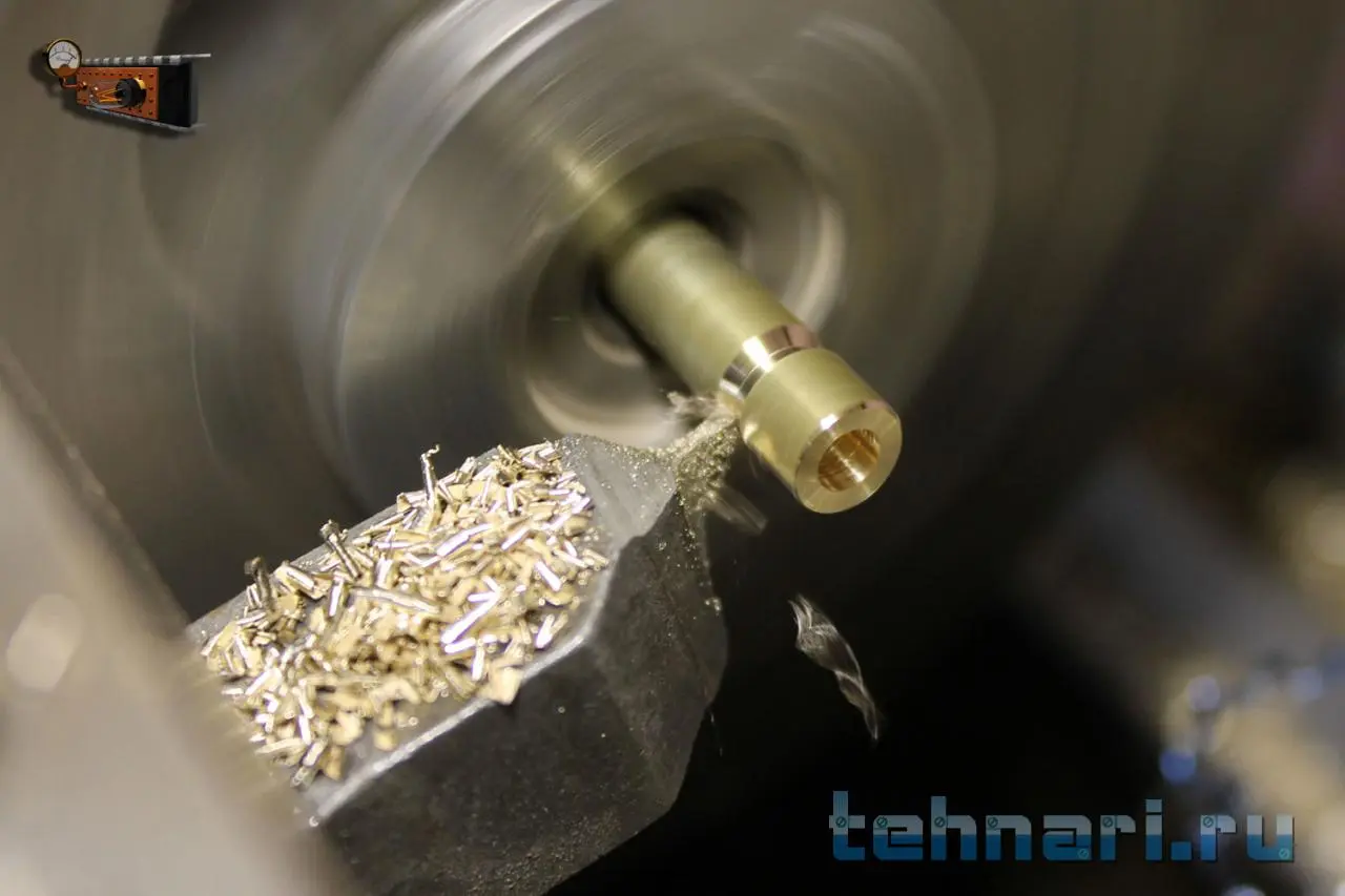 Далее комбинированным резцом снимаю фаски и протачиваю посадочное место, этим же резцом отрезаю.